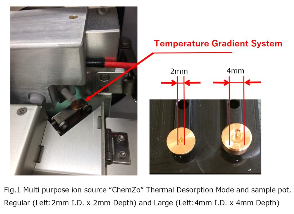The multi-purpose ion source “ChemZo” is an innovative ion source that enables direct analysis of liquids and solids, as well as real-time analysis of gases, using a single device—capabilities that were previously difficult to achieve. For liquids and solids, direct measurement is possible without the need for pretreatment, such as dilution or solvent extraction, thanks to the temperature gradient device. For real-time gas analysis, applications include measurements of retronasal aromas. All collected data can be easily analyzed using the integrated software “Spectra Scope.”