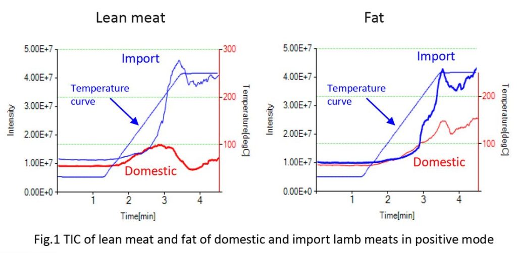The aroma components present in domestic (Japanese) and imported lamb meat were compared using a time-of-flight mass spectrometer combined with ChemZo (temperature increase mode).