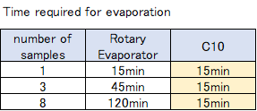 | BioChromato | For example, when you have 8 samples, then you have to use the rotary evaporator for 8 times, but the Smart Evaporator C10 can handle 8 samples at a time so that induces the better efficiency? |