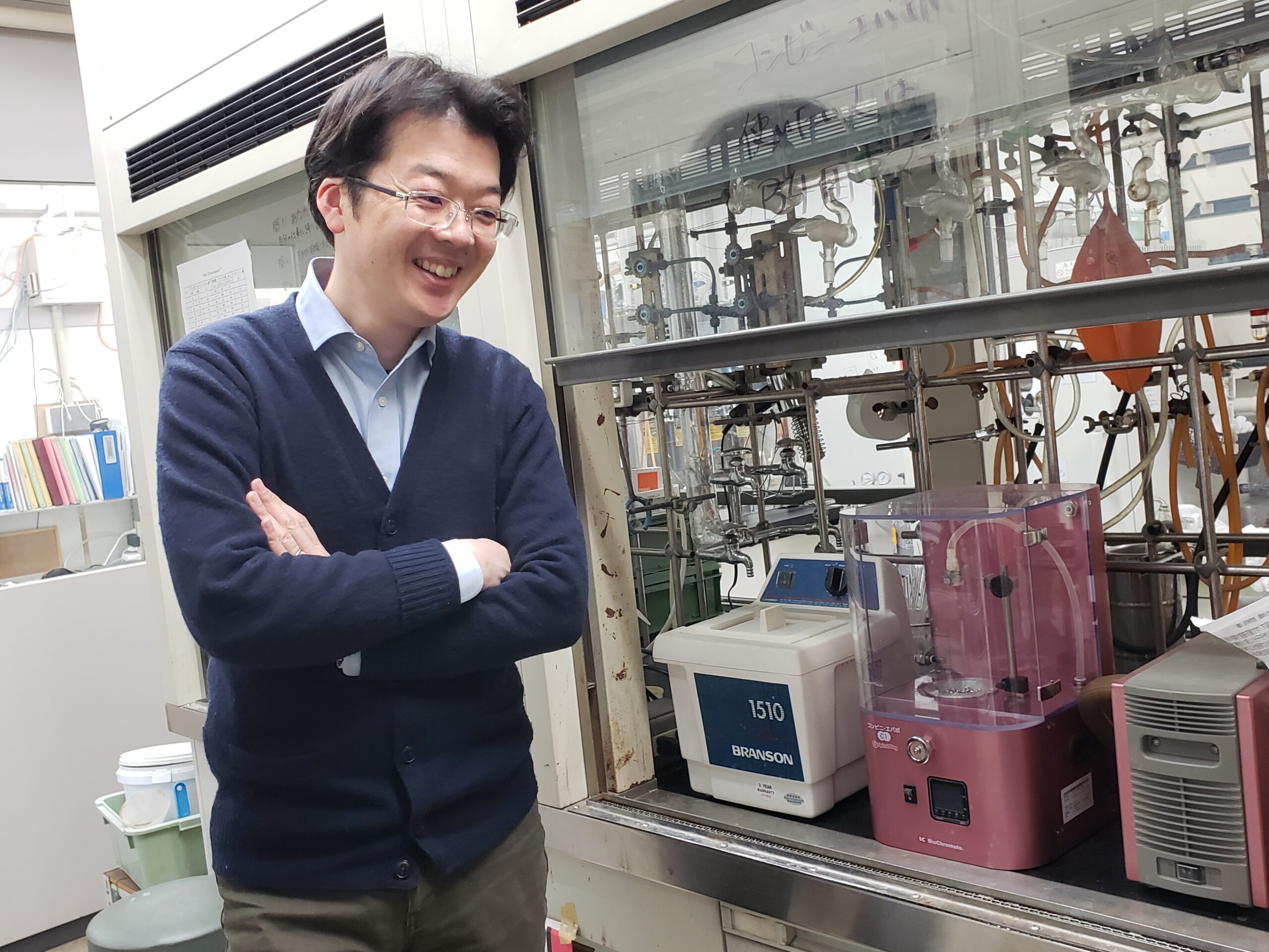 Dr. Koike who has kindly cooperated in this interview is using photocatalystic reaction to develop new molecules with various functions. For him, compound recovery rate before and after the NMR measurement in the process of organic synthesis experiments had been the issue to solve. In the past, in order to distill small amount of high boiling point solvent such as DMSO he used to mix the sample with low boiling point solvent then operate on the rotary evaporator. The issues with such a method were: risk of bumping and loss of samples when transferring from a flask to vials (screw bottles). By introducing the Smart Evaporator, dilution of solvent and / or transference of containers have become unnecessary, and that led to the improvement in sample recovery rate and the solution for sample storage space too. Furthermore, avoidance of bumping risks resulted in improvement of safety and operation time – hearing those points at the interview, we are glad to know he is realizing many merits from the product. (Interviewer: Watanabe, Otake, Yokosawa)