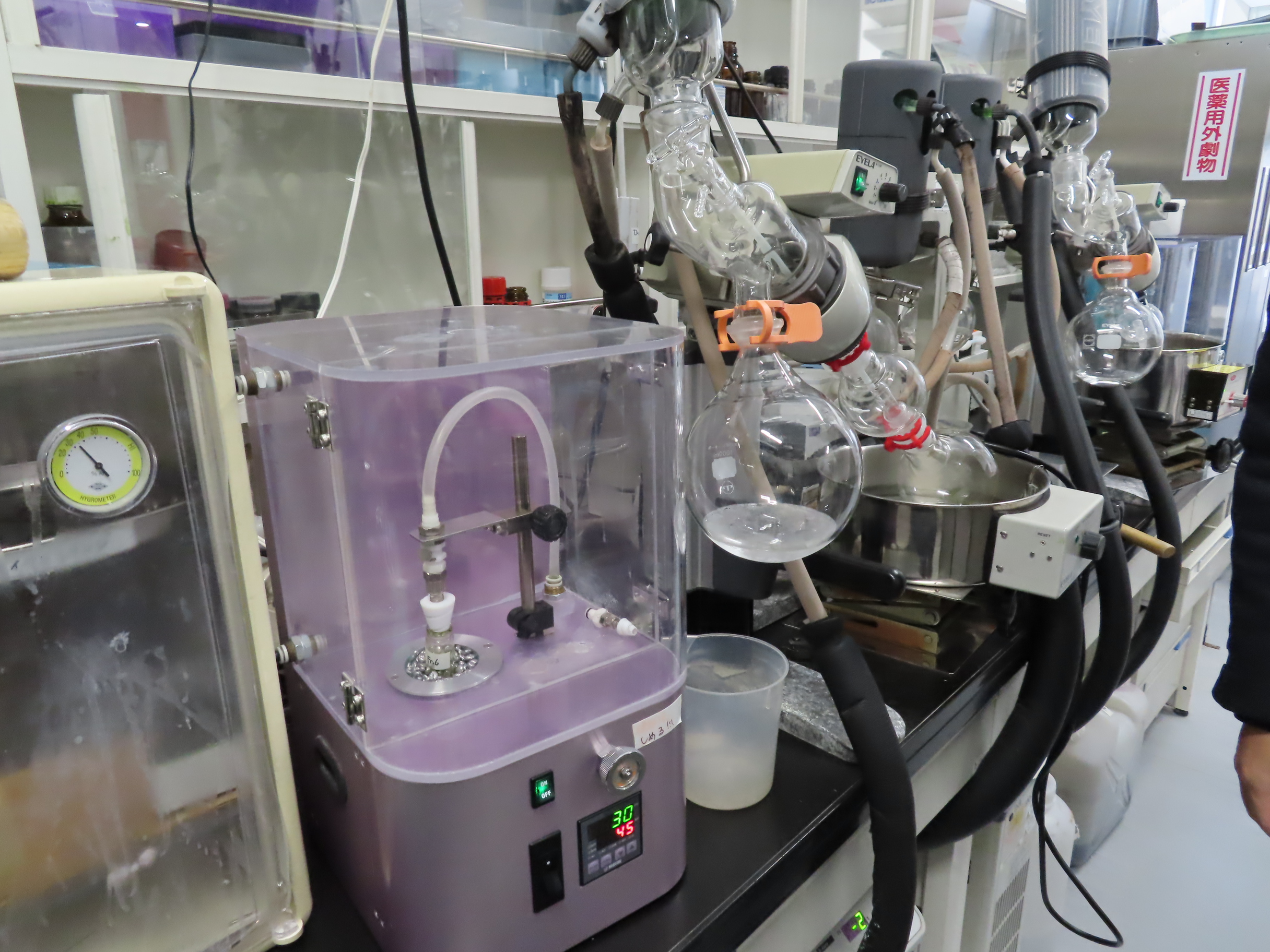 Thank you very much Professor Usuki, for taking the time out of your busy schedule for the interview of this User’s Voice. When I visited the lab, I was very impressed to find three units of Smart Evaporator C1 with each color in purple, green, and blue . Furthermore, there was one Smart Evaporator for 4 samples (4kit in conjunction with Smart Evaporator C1) in red, all the color lineup of Smart Evaporator has been realized at the lab! Also, when I asked about issues, I was very honored and it was a manufacturer’s pleasure like a dream , to receive your comment, “Smart Evaporator is perfect!”. Regarding the equipment installation space that you are currently struggling with, we are considering proposing the use of stacking shelves, for example, to make effective use of the space. Also, during your talk, professor informed us that “Smart Evaporator is becoming popular in academia through word of mouth and other means, but it is not yet well known among the private companies.” We will strive to grow both in name and reality so that we can be of service to more users. We will continue to create products that will help improvement the efficiency of your research, and we look forward to working with you in the future. (Interviewer: Tsubokawa)