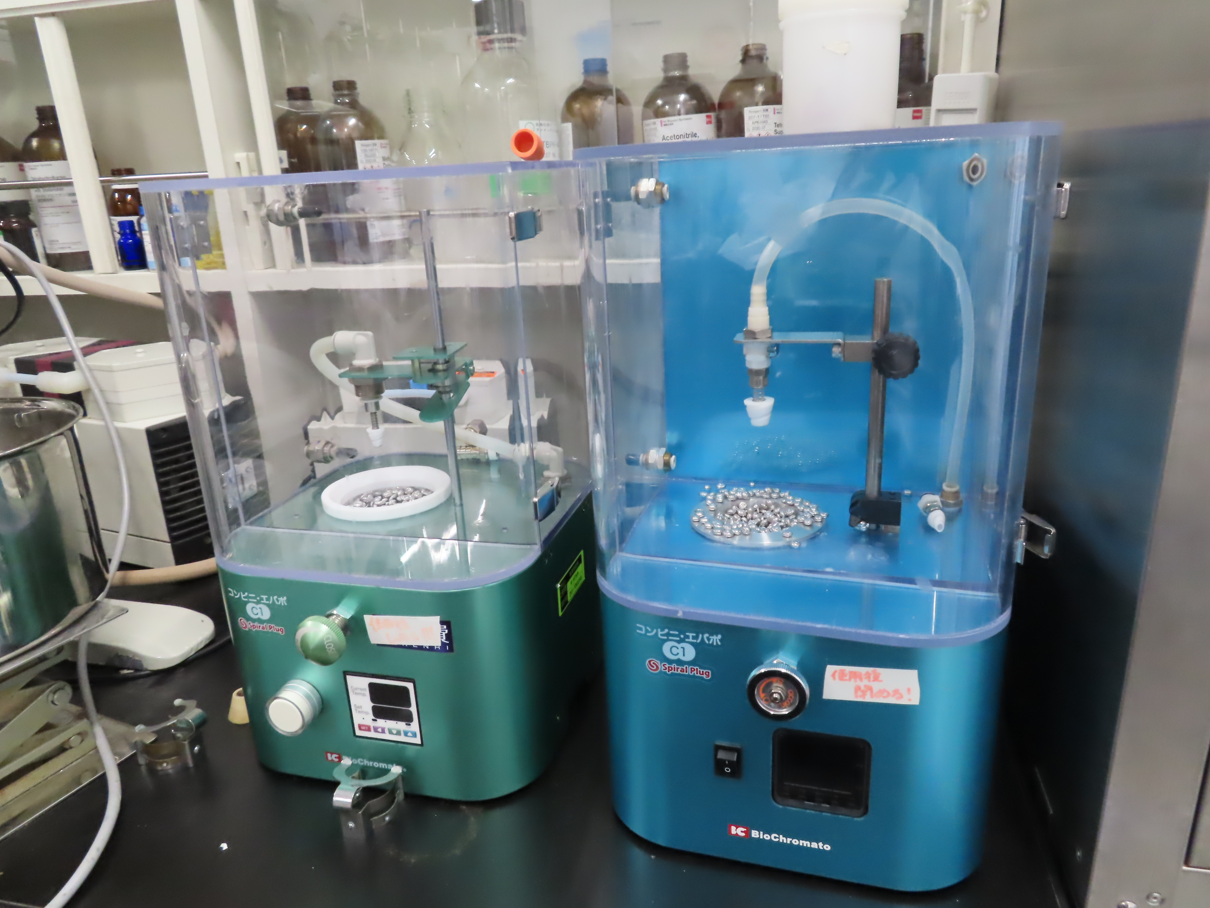 Originally, we owned a Smart Evaporator C1 and used it conveniently. As the number of researchers increased and they had to wait for their turns, we introduced the Smart Evaporator for 4 samples (4kit in conjunction with Smart Evaporator C1), which can concentrate more numbers of samples at once. Now three units of Smart Evaporator C1 and one Smart Evaporator for 4 samples unit are used by twelve people. Rotary evaporators are used when sample volumes are large, but Smart Evaporators are used more often now, because samples with small amount are increased than before, and needs for water evaporation are also increased for more biological samples.