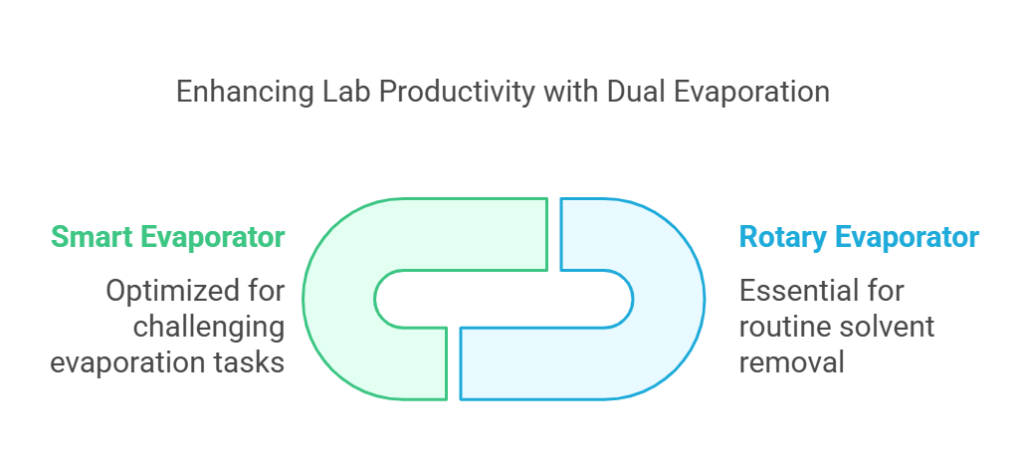 By owning the Smart Evaporator alongside rotary evaporators, labs gain access to two powerful evaporation methods, optimizing workflows for a wide variety of sample types. This combined approach not only improves evaporation efficiency but also reduces risks and enhances overall productivity.